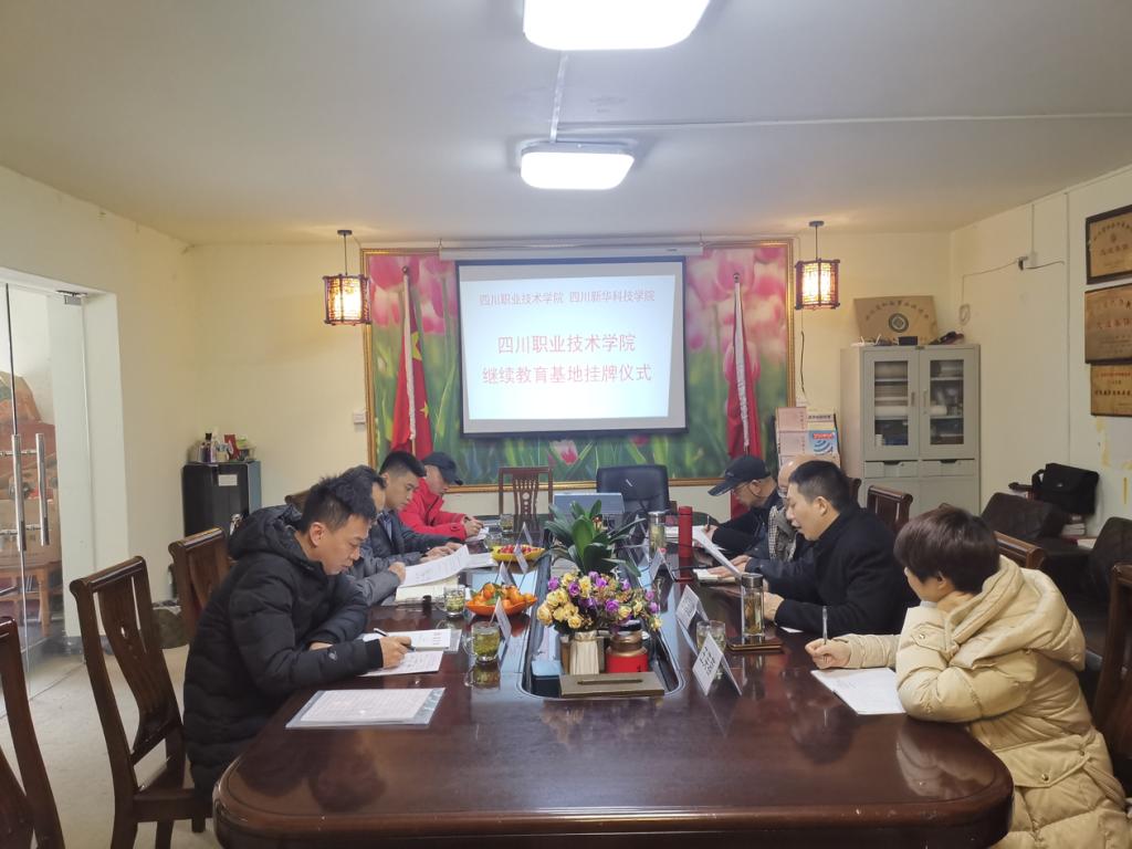 会后,继续教育学院院长徐友辉、新华科技学院院长唐平等人共同为四川职业技术学院成都四川科技学院继续教育基地揭牌。